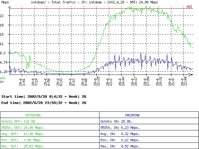 Charts obtained from F.L.A.V.I.O.'s graph module are stored in a hierarchical directory tree, making it easy to integrate them into an intranet for direct reporting to customers. F.L.A.V.I.O. also generates 95th percentile information, useful for burstable traffic accounting and billing.