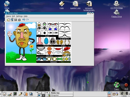 Many of you may be asking at this point, “How do you use Linux in teaching your students?” GHCA is a K-12 school, and so we strive to offer some level of computer training for each grade. Kindergarten students, for example, can use such programs as Potato Guy to practice hand-eye coordination and familiarize themselves with how to use a mouse to manipulate objects on the computer screen. Elementary and secondary teachers integrate the computer lab into their curriculum by using the computer for research, multimedia enhancements or even something simple as coloring digital pictures.