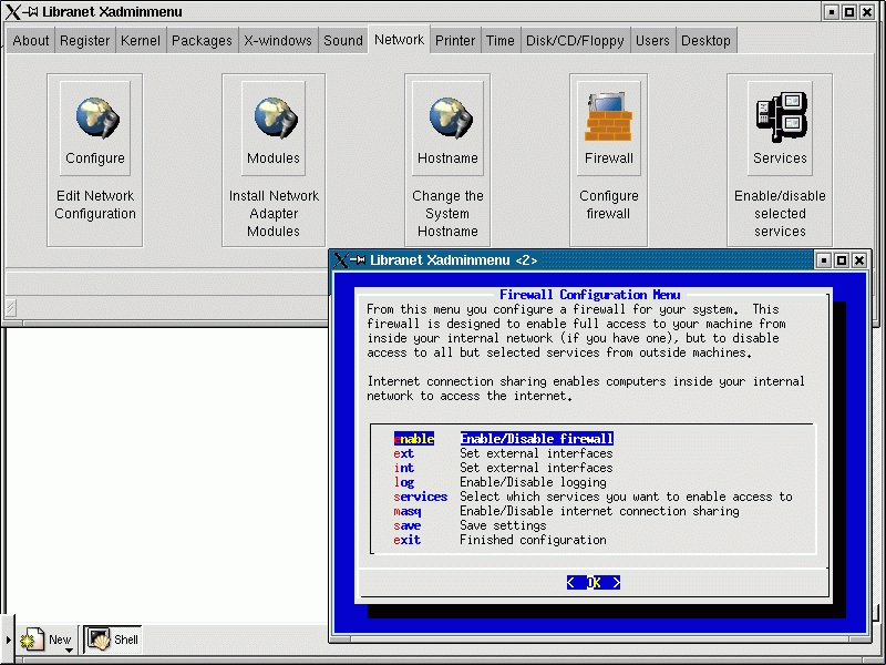 Next up is networking or dial-up configuration. You can set up a firewall after installation using Adminmenu, Libranet's system administration utility that further distinguishes it from classic Debian.
