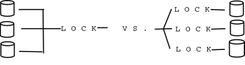The next bottleneck that developers tackled was the global I/O request lock. Each block device is associated with a request queue, which stores block I/O requests, the individual bio structures that represent each block read or write. The kernel constantly updates the queues as drivers add or remove requests. The io_request_lock protects the queues from concurrent access—code may update a queue only while holding the lock. In kernels prior to 2.5, a single global lock protects all the request queues in the system. The global lock prevents concurrent access to any queue, and the lock merely needs to prevent concurrent access to any single queue. In 2.5, a fine-grained lock for each queue replaced the global request lock (Figure 3). Consequently, the kernel now can manipulate multiple queues at the same time.