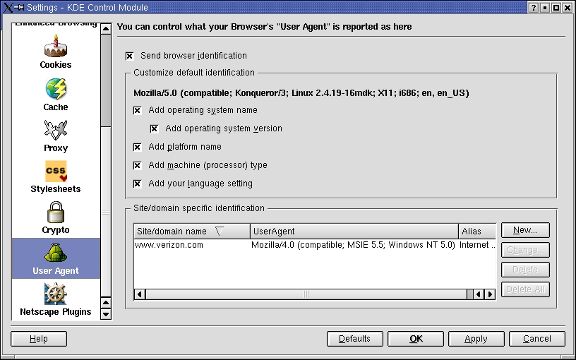 Speaking of transactions, it's usually a good idea to have more than one web browser available. The reason? Web site access. At first, you think a browser is a browser; other than the look and feel, they all do the same thing. Even though it is popular, Mozilla lacks a feature that Konqueror has: changeable user agents.