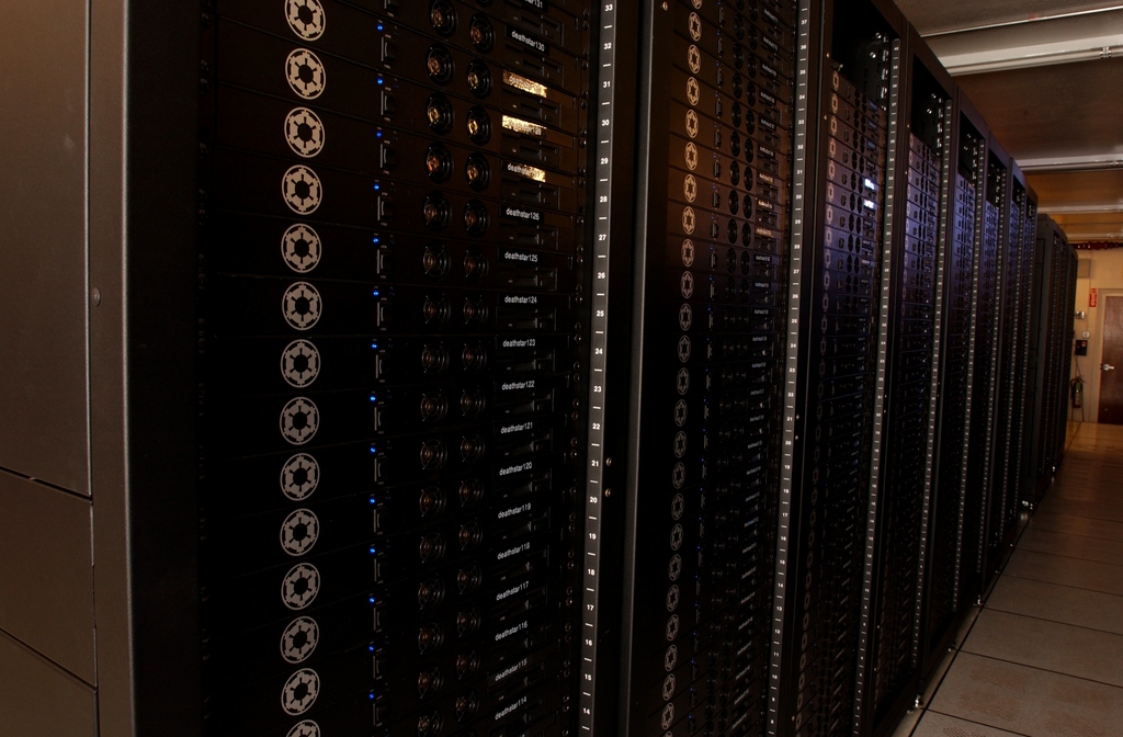 The Star Wars Death Star exists! But, not as a menacing planet-killing weapon. ILM's Death Star renderfarm is the computing power behind the many motion pictures produced at Industrial Light & Magic. “Linux will just continue to grow”, says ILM CTO Cliff Plumer. “Our renderfarm has over 1,500 processors currently, and almost 1,000 more are added every evening with desktops.” The renderfarm utilizes both dedicated CPUs and the computing power of idle desktops.