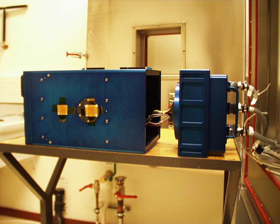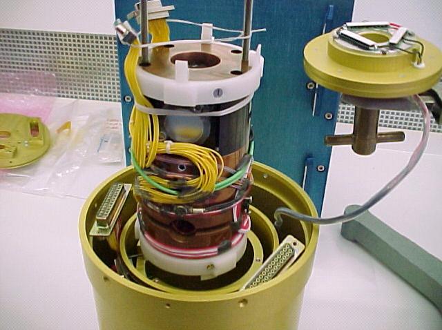 Figure 3. The ALI insert for study of liquids at critical point at low temperatures. The right side contains the microcontrollers and electronics for thermal control and scientific data acquisition.