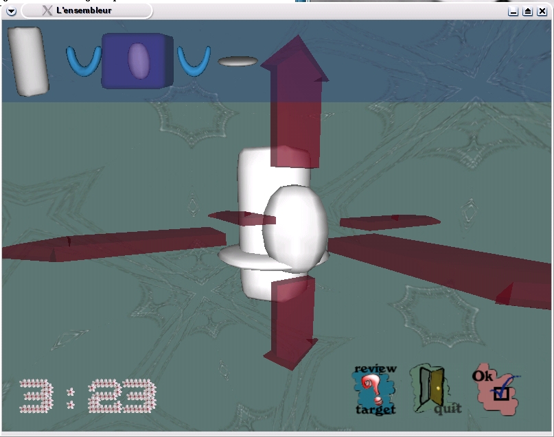 Building things on solid ground is interesting enough, but try building them in a 3-D, zero gravity, virtual world. That's the idea behind one of the strangest games this Linux chef has ever run across. The program, called Ensemblist, was created for a 2003 Paris game-coding exhibit. This is another one of those deceptively simple ideas that turns out to be something much greater. All you have to do is build the shape presented to you on-screen using simple geometric shapes. This assembly uses simple programming and mathematical principles: boolean, union and intersection.