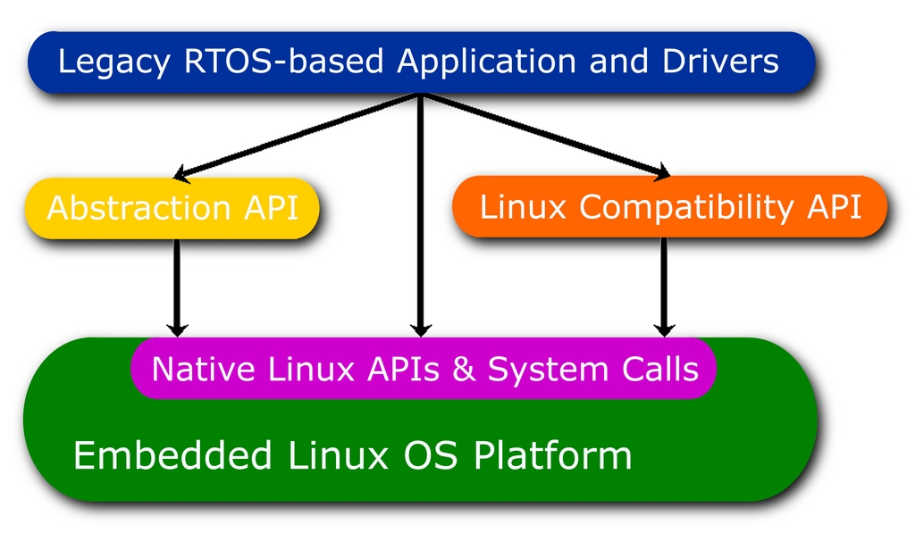 Developers in a hurry to move off a legacy RTOS or those trying to glue together a prototype are more likely to attempt to map or convert as many RTOS APIs to Linux equivalents in situ. Entities in common, such as comparable APIs, IPCs and system data types, port nearly transparently. Others can be addressed with #define redefinition and macros. Those remaining need to be recoded, ideally as part of an abstraction layer.