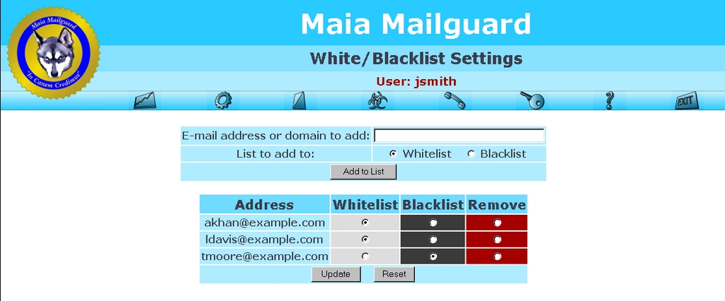 Similarly, amavisd-new provides whitelists and blacklists at all three of these levels. This allows administrators to define system-wide lists; at the other end, users can maintain their own individual lists.