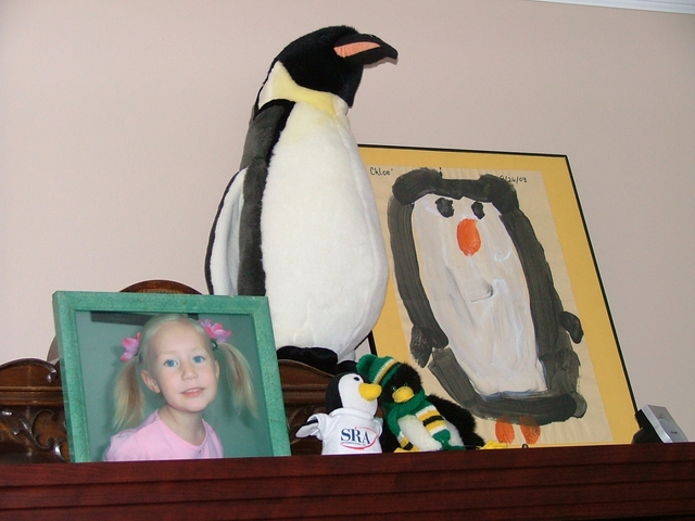 Please find attached a photo of my granddaughter the family artist. She's been admiring my small penguin collection and wanted to add one of her own. So as you see, I now have a Chlo�Original Tux for my collection, and I'm sure her artwork is much better than any I could have done myself. Plus, she's a future Linux user.