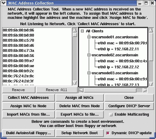 Figure 6. Cluster nodes are network-booted, and their MAC addresses assigned to host entries.