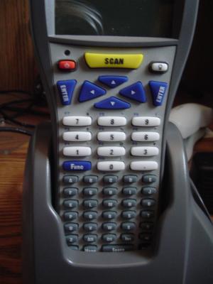 The screen and keypad of the M7100 also reflect the rugged business nature of the device. The screen is a 160×160 backlit LCD, and the 55-key alphanumeric keypad comprises the bulk of the device's front face. The keys are not arranged in the typical QWERTY configuration but alphabetically for the letters, with a block of larger number keys above. Directly above the numeric keys is a four-direction cluster of arrow keys straddled on either side by Enter buttons. Finally, just below the display are small power and backlight buttons surrounding a large and highly visible scan key. This key activates the Long Range Laser scanner for five seconds, allowing plenty of time to capture one barcode and move on to the next. The five-second feature also provides a measure of battery conservation, preventing the unnecessary power drain that would result from firing the laser continuously. With a complement of fully customizable function keys, the keypad is suited to nearly any purpose. The layout also lends itself to use by either right- or left-handed operators. Although the buttons feel a bit soft, they do provide enough tactile response to help prevent manual data entry errors.