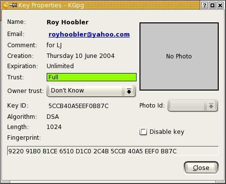 Keys have a fingerprint, and if I am not sure whether a key is authentic, I can look at the fingerprint and call the person to verify it. The fingerprint can be found in the Key Manager by selecting the key and then selecting Edit Key from the menu (Figure 2).