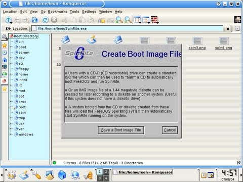 The download is a small (170 KB) Windows executable. This is a setup utility. The utility can create a bootable floppy, CD ISO or install SpinRite directly on removable media. The executable can run under WINE or CrossOver Office. I was able to run it and create a burnable ISO with Libranet 2.8.1 and its bundled WINE version.