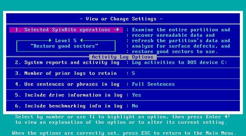 3. Detailed Technical Log: accumulates all of the results and can be copied either to a floppy or to an on-line printer. SpinRite is DOS, so don't expect it to work with a Winprinter.