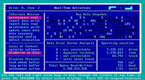 5. DynaStat Data Recovery: the jewel in the crown. If SpinRite detects possible data in a defective location, DynaStat goes to work to coax the data, bit by bit, out of hiding.