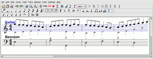 Joerg Anders' NoteEdit is a dedicated music notation editor, designed to provide notation-literate composers with a familiar working environment. Like Rosegarden, NoteEdit supplies various symbol palettes and editing functions to facilitate the entry of notes and other musical signs on a staff or staves. Work can be auditioned at any time, but NoteEdit does not offer a MIDI sequence editor as Rosegarden does. Finally, NoteEdit offers a broad range of export targets, including MusiXTeX, PMX, ABC, MusicXML and LilyPond.