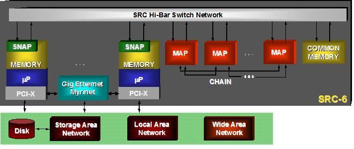 SNAP either can connect directly to a single MAP or to SRC's Hi-Bar switch for system-wide access to multiple MAPs, microprocessors or Common Memory.