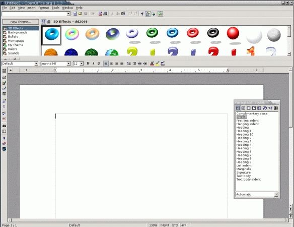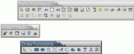 Floating windows are one of the keys to using OpenOffice.org efficiently. In the same way that the design of OpenOffice.org nudges users towards styles and templates, it also leads them towards using floating windows to manage and apply resources. OpenOffice.org is not the first program to use floating windows; Adobe products such as PhotoShop and Illustrator have used them for years, and FrameMaker uses them for applying styles. No other office program that I am aware of, however, makes them such an essential part of the work flow. And no program of any sort customizes their positioning in the same way that OpenOffice.org does.