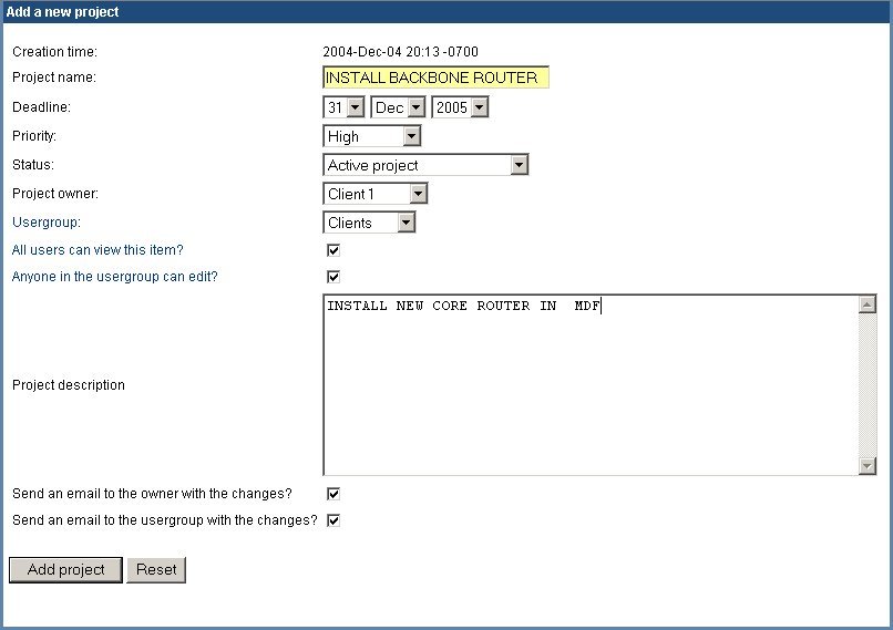 Although the Microsoft products are able to give me most of what I want, they have their limitations. First, Exchange/Project is a proprietary setup geared exclusively toward Microsoft Windows users and, more specifically, Microsoft users within the same organization. Second, Microsoft's Exchange package is not cost effective for most small companies. Third, although MS Project and other Gantt charting applications are the de facto standard for project management applications, they tend to take a macro-management approach to jobs and are a better fit for larger-scale operations like construction. Finally, I wanted integration between the file repository and the project status information, so that a project could be managed by a group of people with the proper collaboration between parties and across organizations.