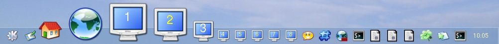 The second mode is called parabolic zooming mode and is more like the effect created by KXDocker. In the normal mode, virtual desktops are represented by numbered squares representing the workspaces, but they do not zoom. This changes in the parabolic mode as shown in Figure 3.