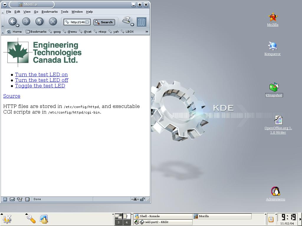 The LBox supports telnet, so I now could telnet into the LBox from a shell on the laptop--if I configured the laptop for telnet. As shipped, the LBox does not support SSH. However, it does have an HTTP daemon, so I could access it with a browser. A Web page already was set up on the LBox (see Figure 1) that allows one to turn on, turn off or toggle an LED on the LBox board; it also provides links to the source code. This nicely demonstrated that you could interact with the LBox through a Web interface.