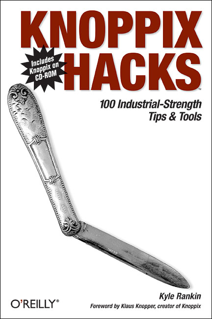 Today, because of the power and flexibility of Knoppix, like many other people, I burn multiple copies of each new release: one for my own use and the rest to give away. Just as giving away Knoppix CDs fits neatly into my advocacy agenda, Knoppix Hacks by Kyle Rankin fits into the O'Reilly catalog as another excellent book. Rankin formally documents what makes Knoppix and its derivatives such important tools for systems professionals.