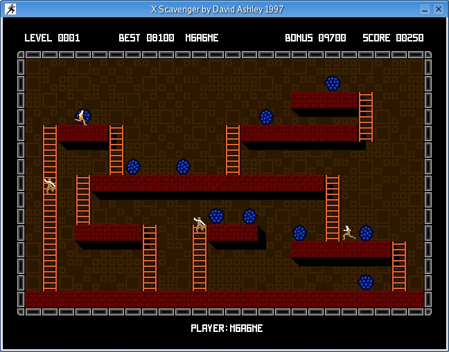 Many years ago, when this humble Chef was quite a bit younger, I was hooked on a game called Lode Runner. Dave Ashley's excellent Scavenger is similar to this classic game and is great fun to play (Figure 1). The idea is simple. You run around climbing ladders, shimmying across ropes and running from one platform to another, collecting gems while avoiding the bad guys. Depending on what is beneath your feet at the time, you also have the ability to dig holes, either for escape or to trap enemies.