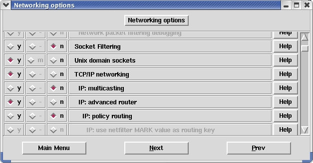 Figure 3. Enable advanced router functionality using the Networking options section of the kernel configuration menu.