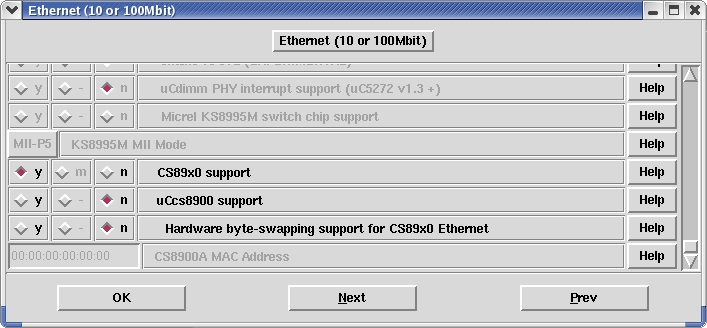 Using the board shown in Figure 5, we must disable the hardware byte-swapping support for CS89x0 Ethernet option in the Ethernet (10 or 100Mbit) section (Figure 4).