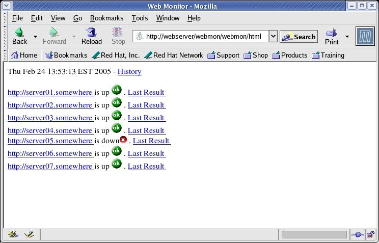 Figure 1. monitor_web.sh in action. Run the script from cron to regenerate this page as often as needed.
