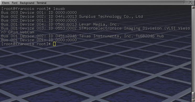 Besides looking great, Eterm offers some cool features. For example, Eterm can have a variety of background images, and in fact, it comes with several. Some of these are tiled pixmaps, and others are full background images (Figure 1). Simply click Background on the Eterm menu bar, then Pixmap and select from the tiled or scaled pixmaps available.
