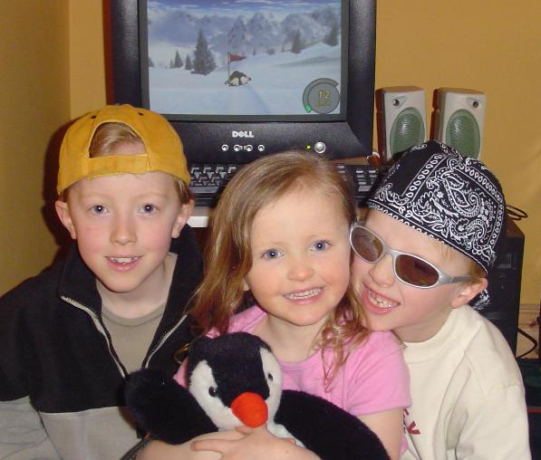 My wife Deirdre and I have three young children: Joseph, age nine; Aaron, age seven; and and Aideen, age five—see Figure 1. As shown in the photo, indoctrination starts early in the Barry household: there's a fluffy Tux in the foreground and an electronic Tux on the screen.