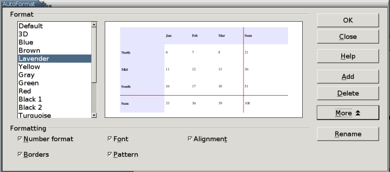 Figure 2. Autoformats aren't as flexible as styles would be, but they are a somewhat more limited substitute.