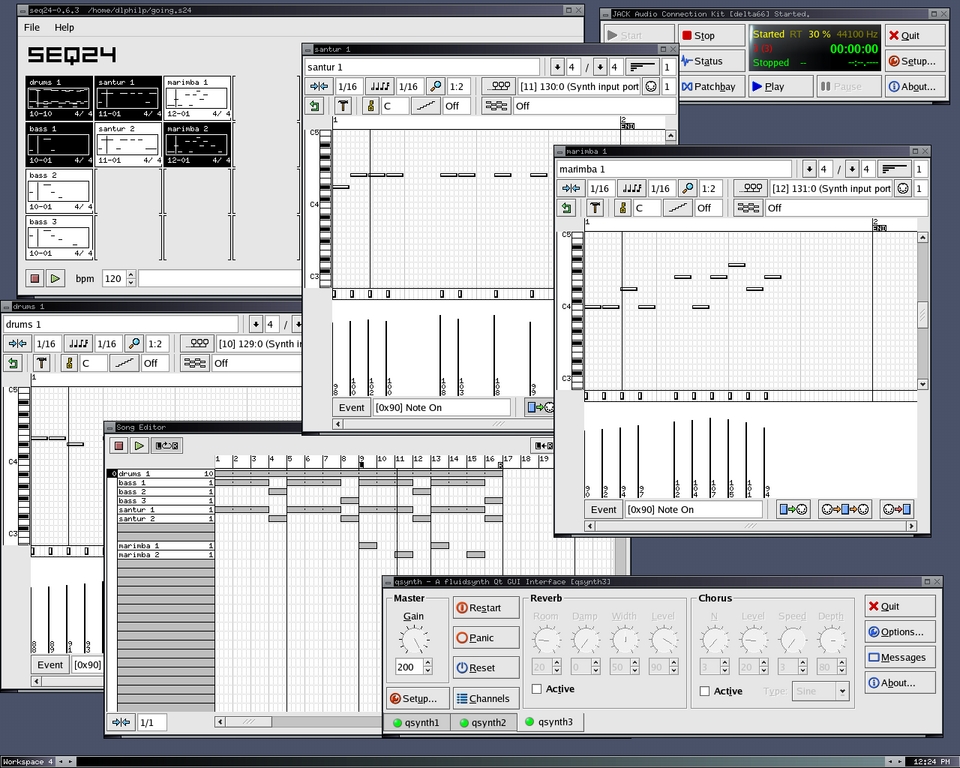 In last month's column, I introduced seq24, a minimal but powerful MIDI sequencer. The final screenshot for that column shows off seq24 at work here in Studio Dave. In that screenshot you can see two of my favorite Linux audio programs, Rui Nuno Capela's QJackCtl and QSynth. In this month's column, we look at those applications more closely to learn what they do and how you can use them in your own Linux MIDI music workstation.