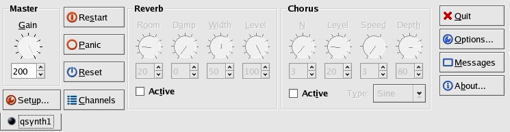 Figure 4 shows QSynth's default appearance. The main panel is arranged clearly and is comprehensible. As with QJackCtl, QSynth employs helpful tooltips to clarify the function of each interface component.