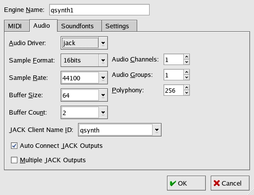 Now that we have a running JACK system, we can use it with QSynth. However, before making the connections, let's look at QSynth.