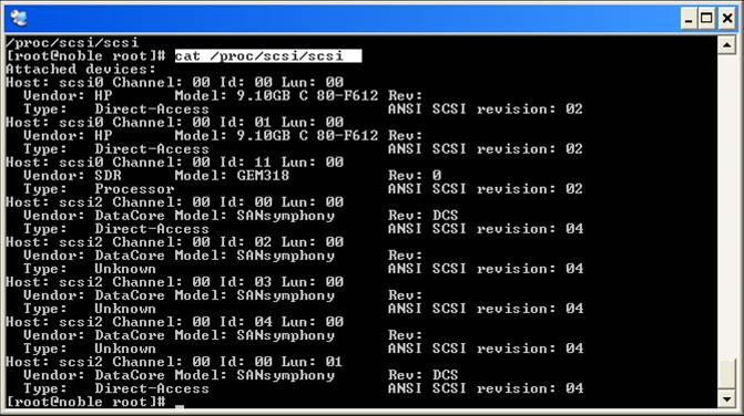 When it comes to SANs, Linux works, but not as easily and flexibly as HPUX. To use a new lun on HPUX, you simply need to type <ioscan> and <insf -e>. But with Linux, you either need to reboot or find the hostadapter, SCSI channel, ID number and lun number and then type: