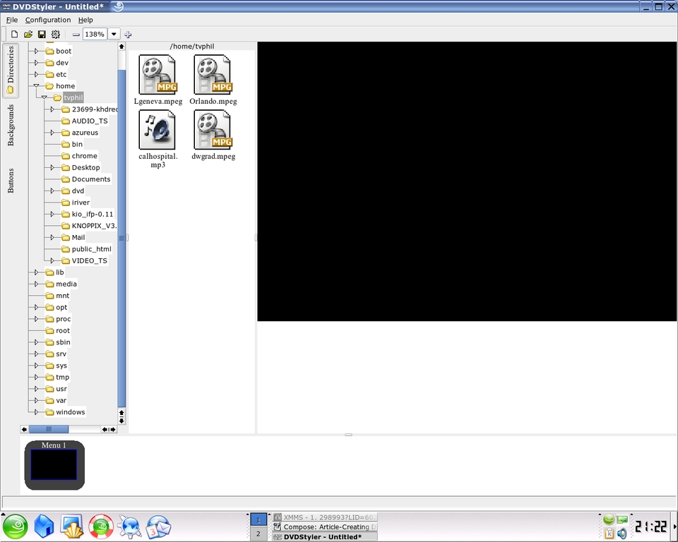 As a user of Linux for nearly two years, one thing I have found is that it has been lacking in software solutions for video production. I'm happy to report that this situation has changed for the better. For the past six months, I've have been using Kino 0.7.5 for my video editing with results equal to and in some ways better than what's offered in some Windows video-editing solutions or Apple's iMovie. Now there is a DVD-authoring solution that complements Kino by being user-friendly and creating authored DVDs that will play on most post-2000 DVD players. It's called DVDStyler, and in this article, I show you how to use it and some of the options it offers to create as simple or elaborate a menu as you want for your video DVDs.