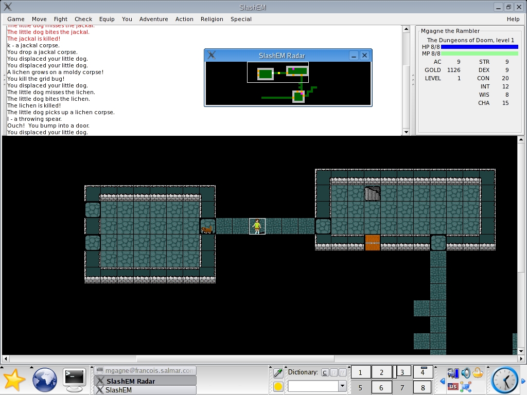 Figure 2. gtk2hack brings a clean graphical interface to NetHack along with a radar providing feedback on the explored areas.