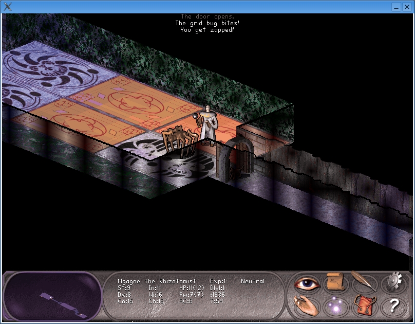 In text mode, and with scores of beautiful graphical games to pull from, NetHack may look too boring to keep anyone interested, and yet it still does. After all, your character is an @, your dog companion a d, a gold piece is a $ and so on. So why is a game like NetHack still so popular? It is because of the incredible richness and complexity of the game. The idea seems simple enough, but this is not an easy game and certainly not one you are likely to win in short order. Deep in the underground levels of the Mazes of Menace (or the Dungeons of Doom) lies the fabled Amulet of Yendor. To the one who finds the amulet, untold riches await along with the gift of immortality bestowed by the Gods. To gain the amulet, you must travel through the dungeons and mazes, encountering puzzles, strange objects, hidden pits from which there is no escape, demons, goblins, grid bugs and other monsters, including the simplest of dangers, hunger and thirst. You may be a barbarian, a monk, a knight, a wizard or merely a tourist. You may be human or not. At your side is a small animal companion, a dog or a cat.
