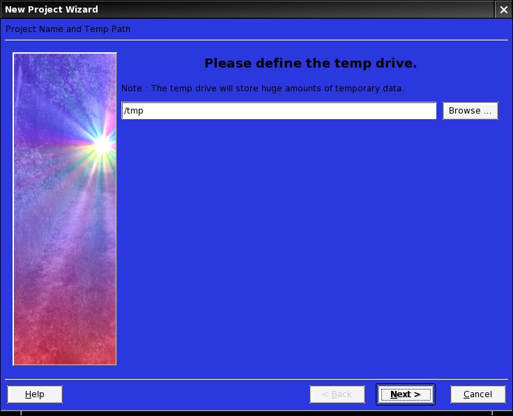 To start a new project (File→New), we need to run through the setup wizard (which appears when you specify the creation of a new project), specifying temp directories, project title and data destination directory (Figures 2 and 3).