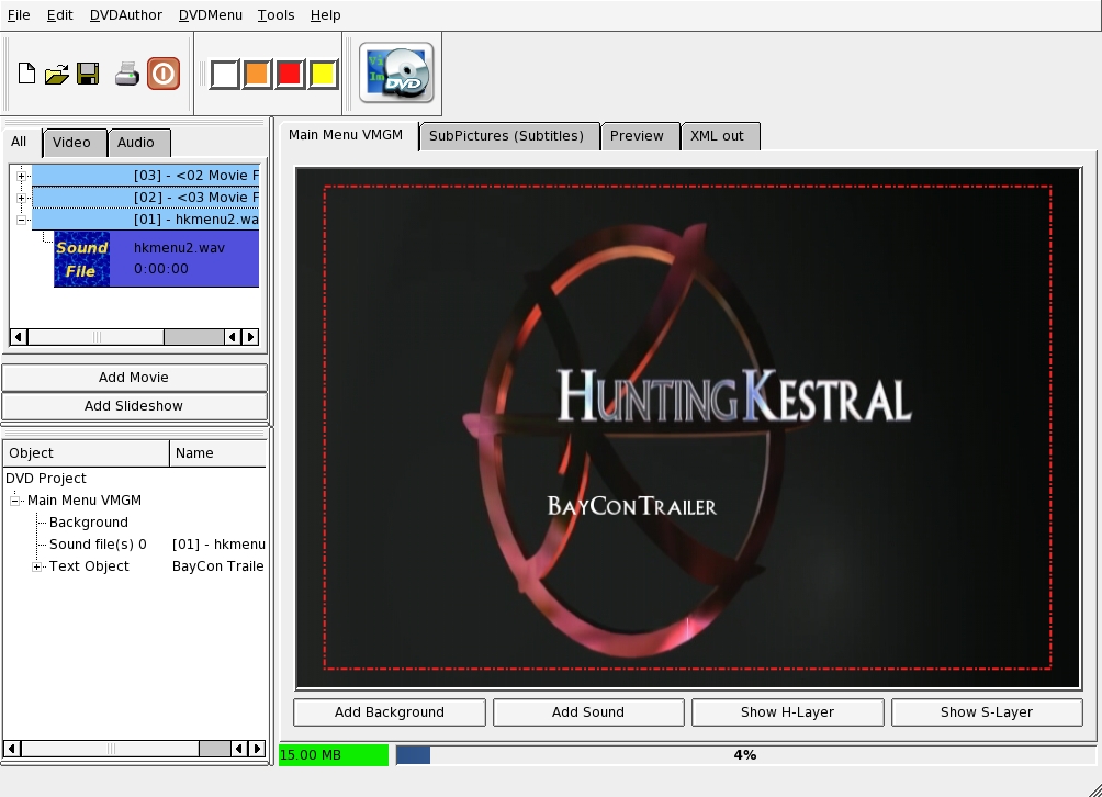 Recently, I had the opportunity and the spare time to revisit the field of Linux DVD authoring and was pleasantly surprised by what I found. Although the command-line tools for DVD authoring have long had the technical capability to construct a complex menu-driven DVD, the GUI tools suitable for use by end users and artists have been sorely lacking. I was pleased to find that this situation has changed. The task: to put together a promotional reel for my independent film, packaged on an attractive, menu-driven DVD.