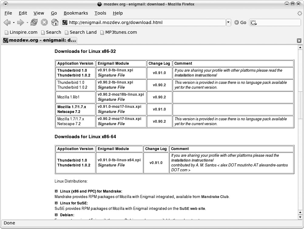 Figure 1. The Enigmail Download Page