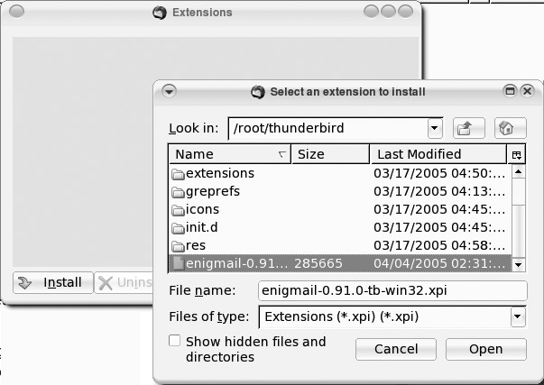 then choose Tools > Extensions > Install. Browse for the Enigmail
