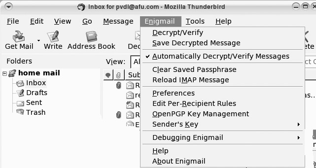 Figure 3. Thunderbird's Enigmail Menu