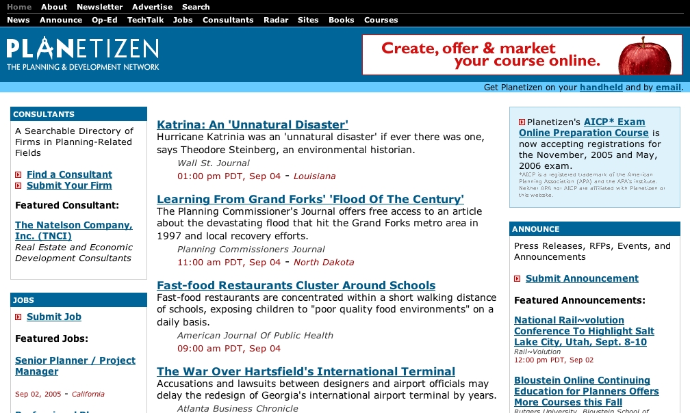Planetizen is a community Web site for urban planners, architects, developers, environmentalists and other professionals. It offers daily news summaries, editorials, jobs and many other services. Launched in 2000, Planetizen has grown into a popular Web site with a large international audience. To manage a constantly updated Web site, such as Planetizen, a content management system (CMS) is a must. We had built our own custom CMS using PHP and MySQL in 2000. As the Web evolved, we wanted to add new features, but doing so meant expensive in-house development. So, we began looking at alternatives.