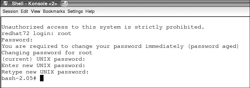The login requires the root password to be changed, and bash will be set up. Figure 3 shows UML ready to function as a Linux system.
