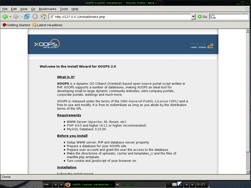 Now, we'll assume you have MySQL and Apache/PHP running, so it is time to start with the installation of XOOPS.