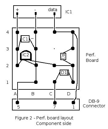 Assuming you don't already have an infrared detector, you have to buy or build one. You can find plans for several infrared detectors on the LIRC Web site, including plans that use the serial port, a USB port or the parallel port. Here, I walk-through building the simple serial port detector inside a DB9 hood. This serial port design does not follow the RS-232 standard fully, but it is close enough for most desktop PCs. When it comes to laptop computers, which often don't fully follow the RS-232 standard themselves, this design may be problematic. The circuit diagram is laid out in Figure 1. In Figure 2, you can see one possible layout on perfboard.