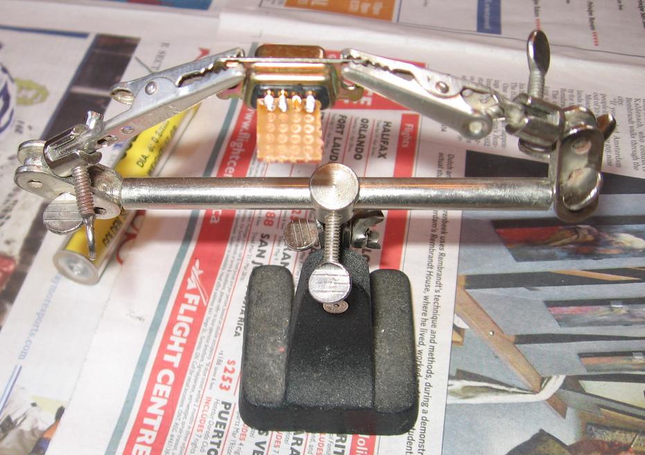 When it comes to soldering irons, 100 and 200 watt versions are available for people who do things such as make stained glass windows. The problem with these high-power soldering irons is they get very hot very fast, and computer parts can be destroyed with too much heat. Therefore, don't use a soldering iron with more than 40 watts, and I recommend using one closer to 25 watts. The "cold heat" soldering irons promoted on television have their place for some jobs, but that place isn't here. Among several problems they have, their tips are much too big for the sort of small-work precision this project requires.