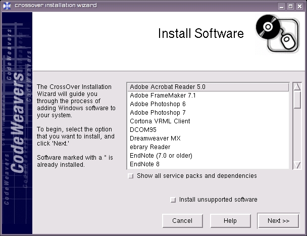CrossOver Office is distributed as a large bourne shell script. On invoking the script, a graphical installer is launched that takes you through the install and configuration process. We found the installer to be simple to use. Once the installer was complete, CrossOver Office then offered us a dialog through which to install various Microsoft Windows software. The installation process automatically created entries in our KDE and GNOME menus, a CrossOver submenu with access to various CrossOver Office tools and a Windows Applications menu for our Windows application launchers once installed.
