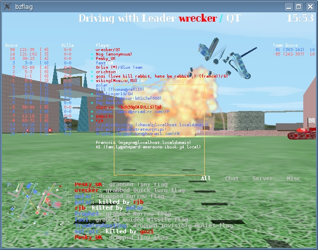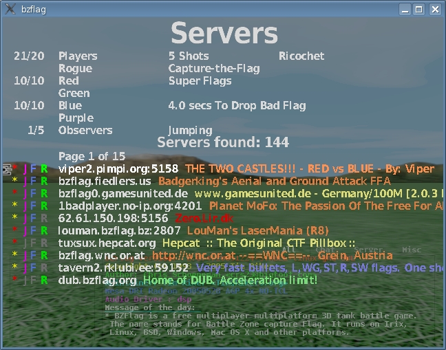 Figure 2. At any given time, dozens of BZFlag servers are running worldwide and hundreds of people are playing.